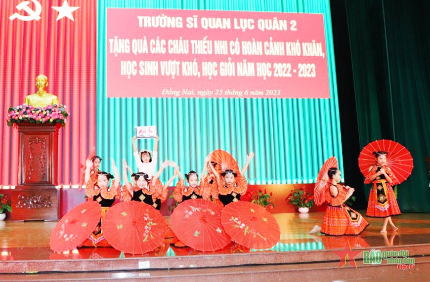 Sáng 25-6, Trường Sĩ quan Lục quân 2 tổ chức trao quà tặng các cháu học sinh vượt khó, học giỏi và thiếu nhi có hoàn cảnh khó khăn là con của quân nhân, viên chức quốc phòng nhà trường năm học 2022 – 2023.