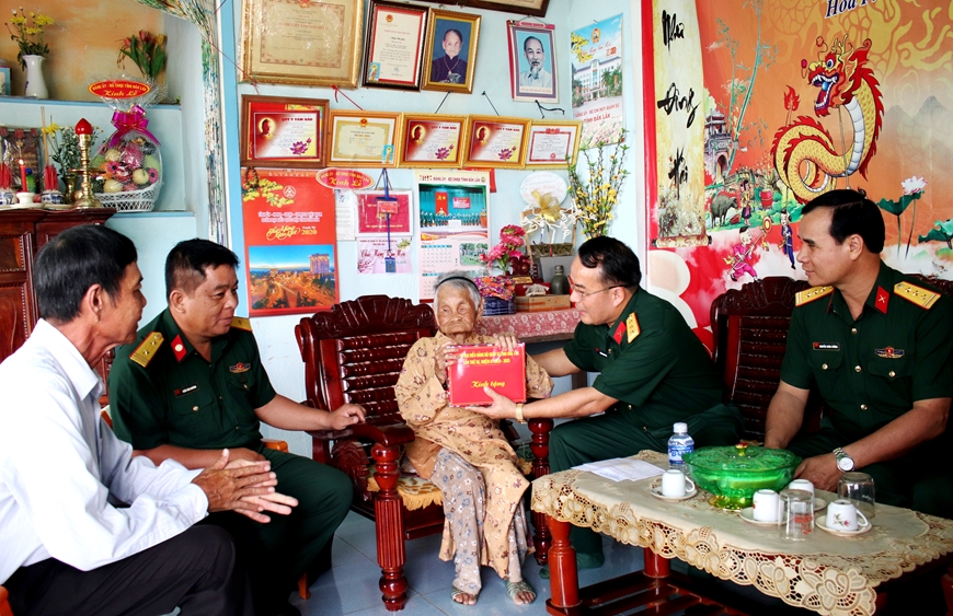 Trao đổi với chúng tôi về hoạt động đền ơn đáp nghĩa, Đại tá Phan Tấn Tiễn, Trưởng phòng Chính sách, Cục Chính trị Quân khu 5 cho biết: “Đến nay, các cơ quan, đơn vị trong toàn quân khu đã lồng ghép các chính sách, huy động nhiều nguồn lực và vận động các cơ quan, doanh nghiệp cùng chung tay chăm sóc gia đình chính sách, người có công. Một ví dụ điển hình là, hiện nay quân khu phụng dưỡng 460 Bà mẹ Việt Nam anh hùng với số tiền từ 1 triệu đồng/mẹ/tháng trở lên. Vào dịp lễ, tết các đơn vị đều cử cán bộ, chiến sĩ đến thăm hỏi, tặng quà động viên các mẹ”.