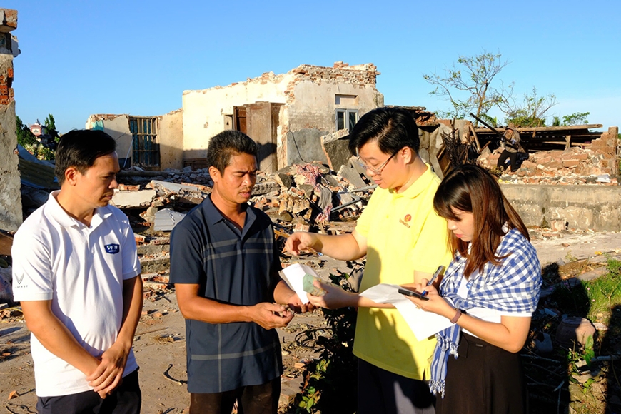 Đại diện Quỹ Thiện Tâm thăm hỏi, động viên các gia đình chịu thiệt hại sau bão số 10 ở Ninh Bình. |