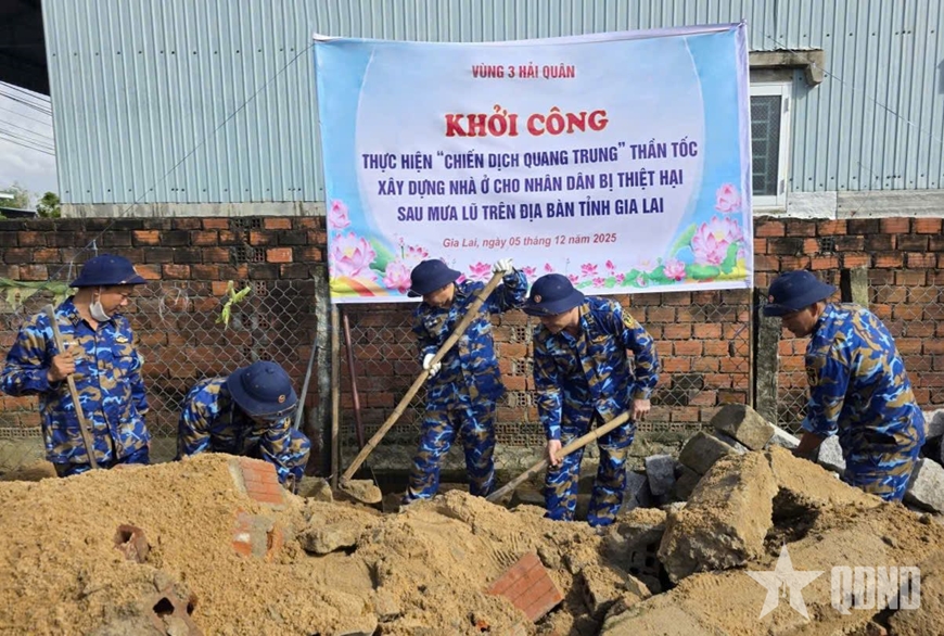 Trước đó, ngày 5-12, thực hiện “Chiến dịch Quang Trung” thần tốc xây dựng lại, sửa chữa nhà ở cho các gia đình có nhà bị thiệt hại do các đợt thiên tai vừa qua tại các tỉnh miền Trung, tổ công tác của Trung đoàn 351 gồm 21 cán bộ chiến sĩ, tiến hành động thổ xây dựng lại nhà cho gia đình bà Đỗ Thị Ba ở thôn Kim Đông, xã Tuy Phước Đông, tỉnh Gia Lai.