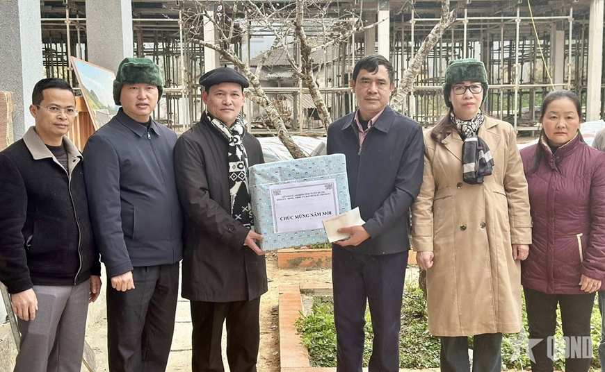 | Đoàn công tác trao quà Tết, động viên gia đình anh Trương Văn Duẩn có hoàn cảnh đặc biệt khó khăn. |