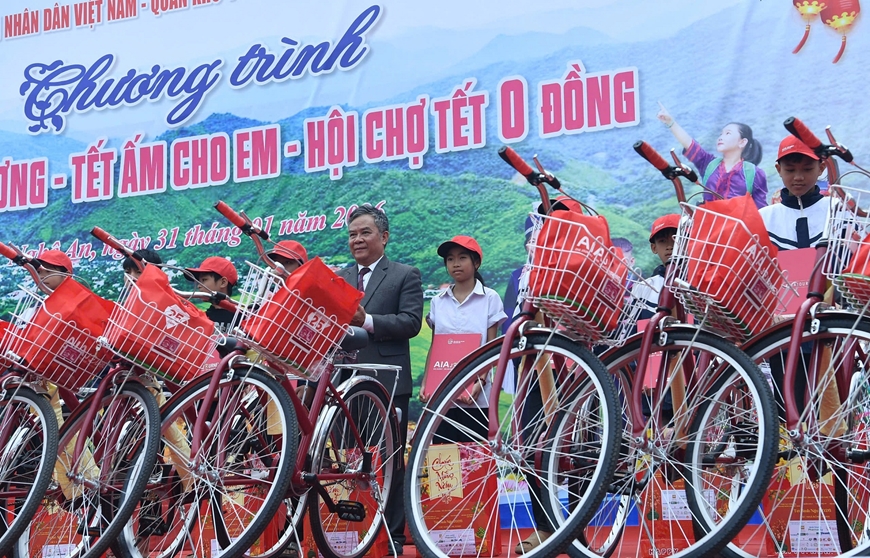 | Nhiều học sinh vượt khó được trao tặng xe đạp. |