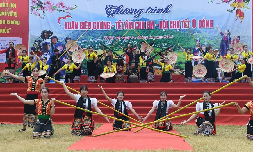 | Các tiết mục văn hóa văn nghệ sôi nổi trong ngày Tết quân dân nơi miền Tây xứ Nghệ. |