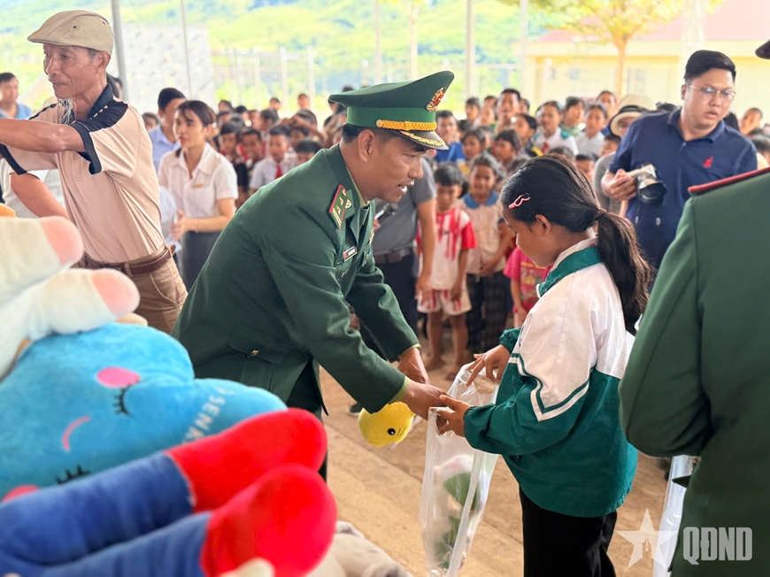 Tặng quà cho các em học sinh tại xã La Lay, tỉnh Quảng Trị.