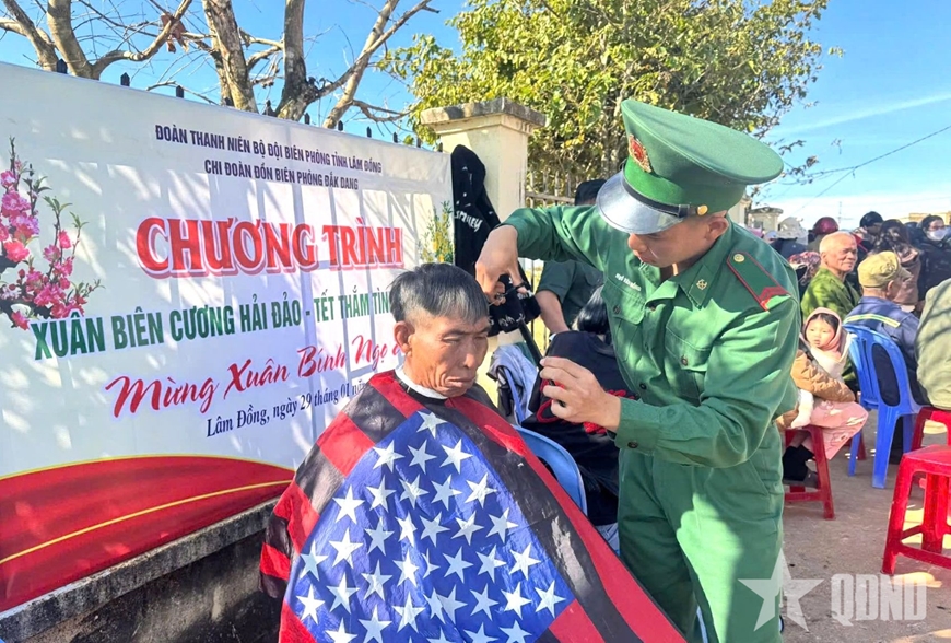 | Hoạt động cắt tóc miễn phí tại chương trình “Xuân Biên phòng - Ấm lòng dân bản”. |