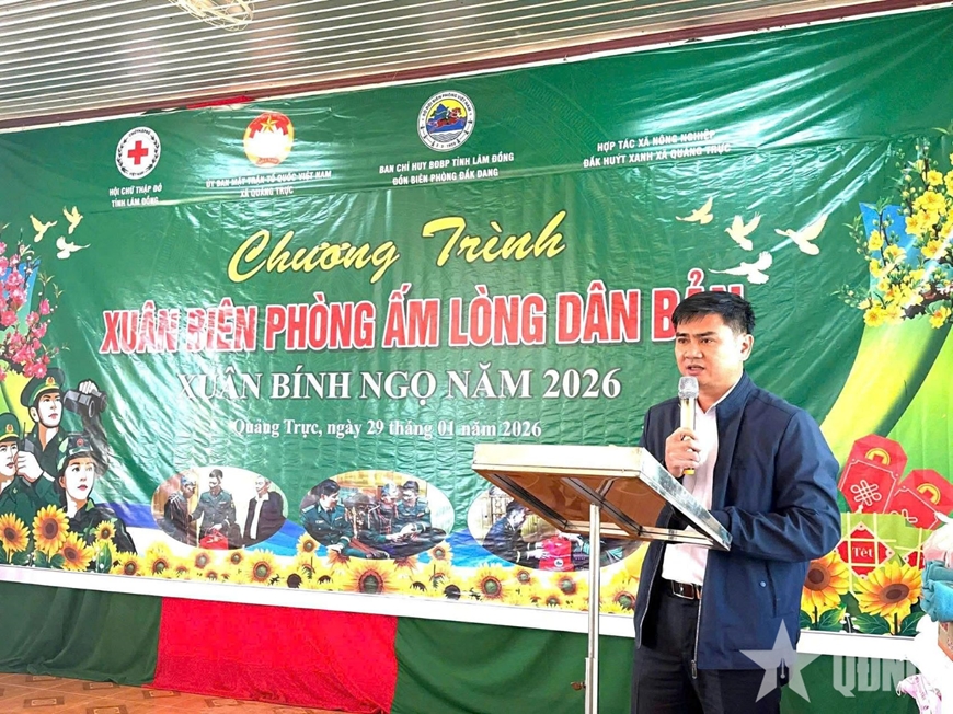 Phát biểu tại chương trình, đồng chí Trần Anh Tuấn, Phó bí thư Thường trực Đảng ủy xã Quảng Trực ghi nhận và đánh giá cao những đóng góp thiết thực, hiệu quả của cán bộ, chiến sĩ Đồn Biên phòng Đắk Dang trong công tác an sinh xã hội tại địa phương. Đồng chí khẳng định, sự đồng hành trách nhiệm của lực lượng Bộ đội Biên phòng đã góp phần quan trọng cùng cấp ủy, chính quyền và nhân dân địa phương thực hiện tốt nhiệm vụ phát triển kinh tế - xã hội, xóa đói giảm nghèo, giữ vững ổn định chính trị, trật tự an toàn xã hội và bảo vệ vững chắc chủ quyền, an ninh biên giới quốc gia.