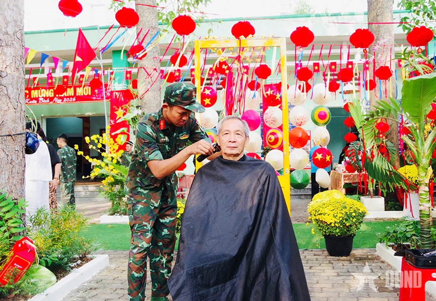 Cắt tóc miễn phí cho người dân tham gia chương trình "Xuân đoàn kết-Tết nhân ái".