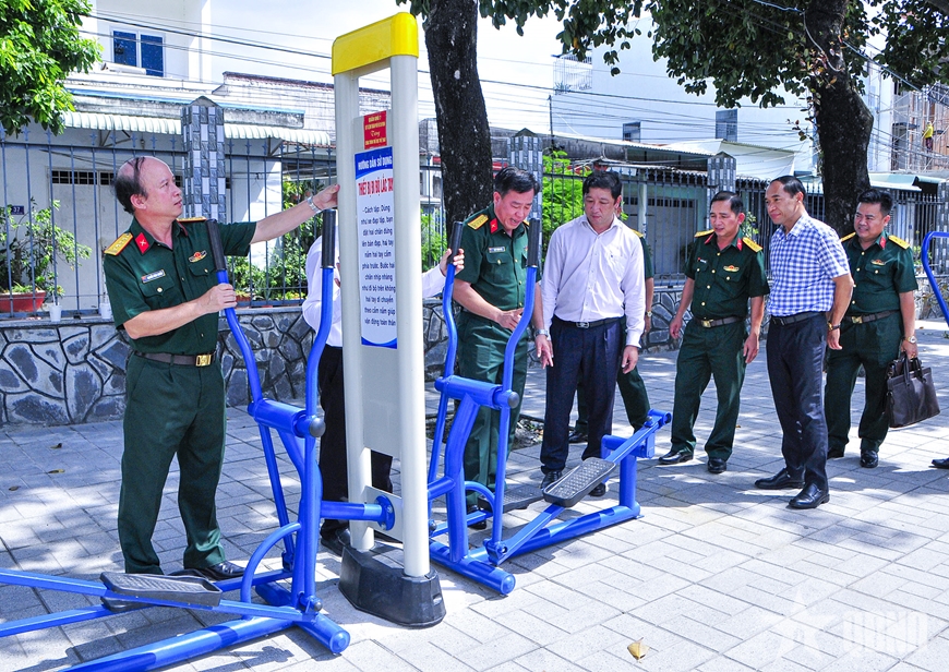 Sau hơn 1 tháng thi công, công trình được đưa vào sử dụng với diện tích gần 470 m2. Các hạng mục gồm 1 sân Pickleball, diện tích 167 m2; khu tập thể dục thể thao ngoài trời với các thiết bị đẩy tạ, xà đơn, xà kép, thiết bị boxing… Tổng kinh phí xây dựng hơn 600 triệu đồng, trong đó Bộ tư lệnh Quân khu 7 hỗ trợ 500 triệu đồng.