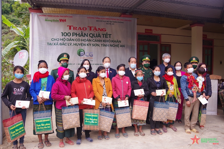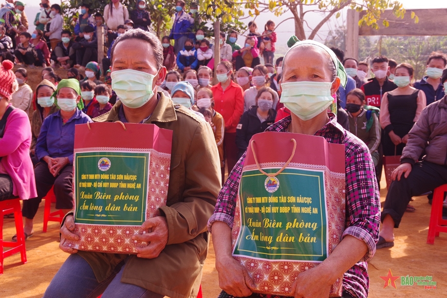 Thực hiện chương trình Bộ đội Biên phòng hướng về đồng bào nơi biên giới, không để ai bị bỏ lại phía sau, mới đây, Bộ đội Biên phòng tỉnh Nghệ An phối hợp với các cơ quan, đơn vị, các tổ chức, nhà hảo tâm tổ chức trao tặng quà các gia đình nghèo trên địa bàn biên giới của tỉnh nhân dịp Tết Nguyên đán Nhâm Dần.
