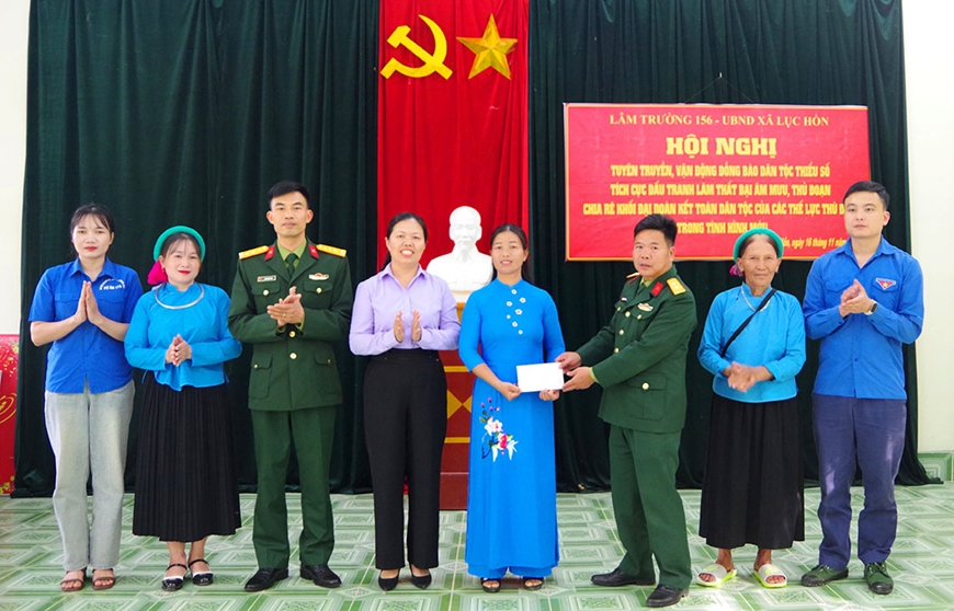 Bà Chíu Tài Múi, dân tộc Dao, trú tại thôn Kéo Chẳn (xã Lục Hồn) chia sẻ: “Nghe các chú bộ đội của Lâm trường 156 tuyên truyền, tôi nhận thức được âm mưu, thủ đoạn của kẻ xấu. Tôi cùng bà con trong thôn sẽ đoàn kết với bộ đội, chính quyền địa phương tích cực tham gia phát triển kinh tế, xây dựng cuộc sống lành mạnh ở khu dân cư”.