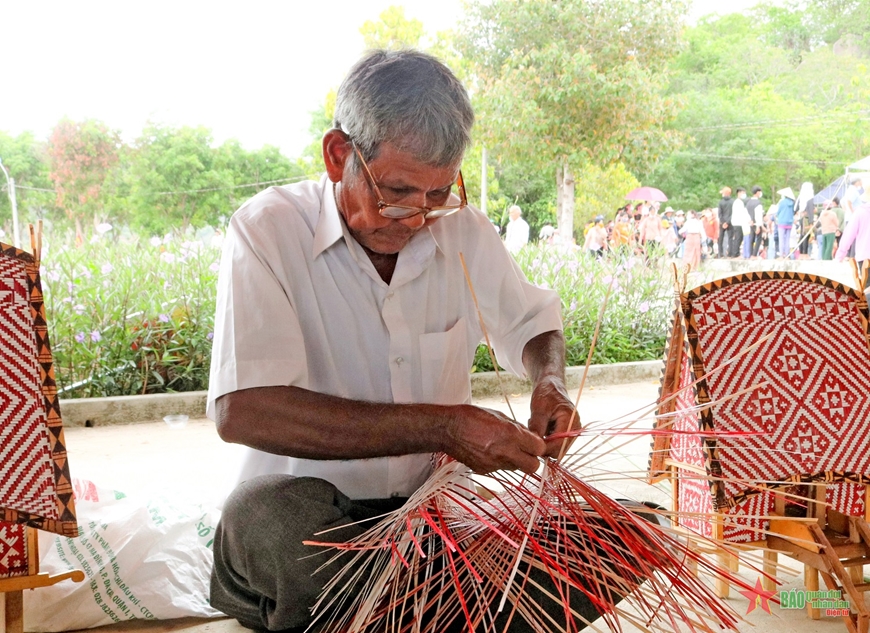 | Tái hiện các nghề truyền thống của đồng bào như: Đan lát, dệt thổ cẩm trong phần hội. |