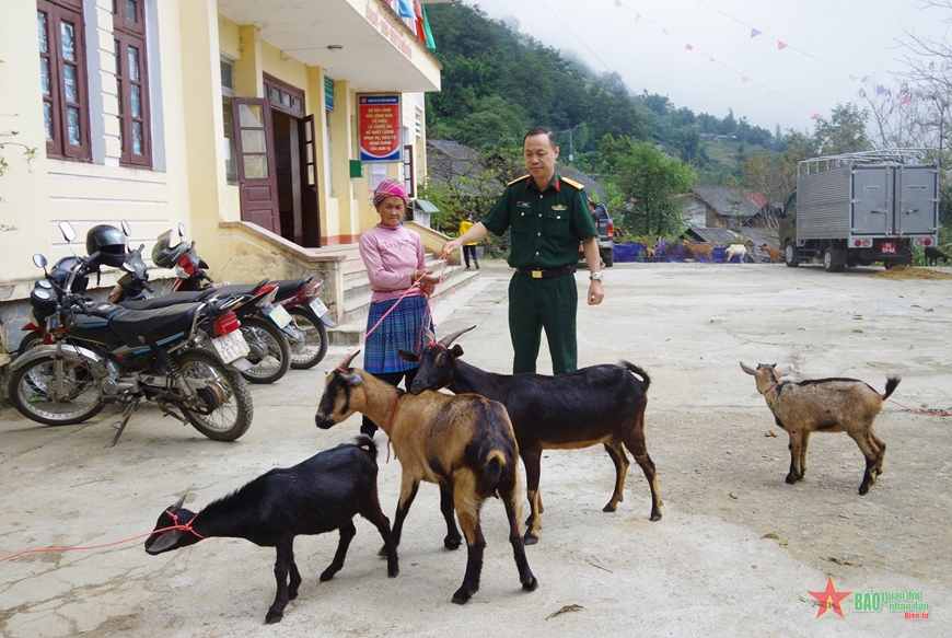 | Cán bộ Đoàn Kinh tế-Quốc phòng 345 trao con giống tặng người dân xã Trịnh Tường (Bát Xát, Lào Cai), năm 2019. |