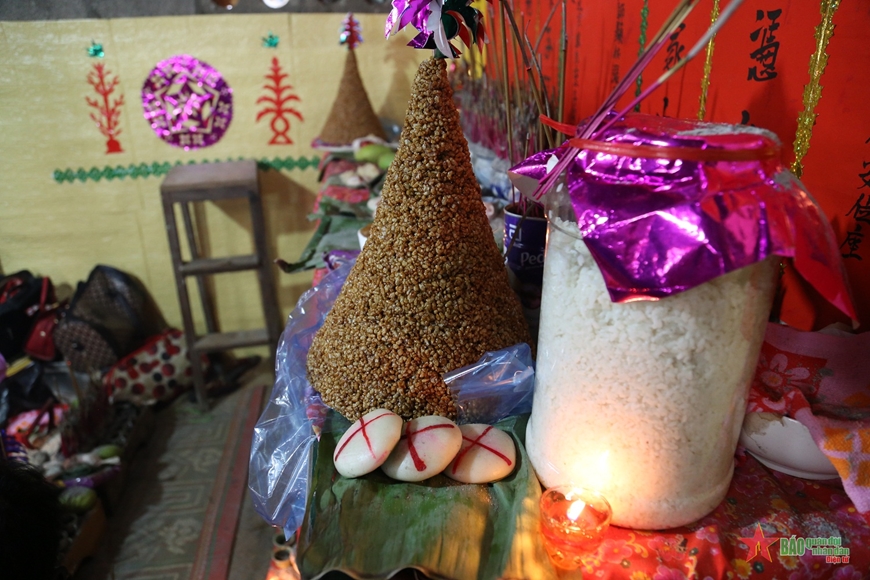 | Khẩu sli, bánh giầy, gạo rượu không thể thiếu trên bàn thờ làm lễ. |