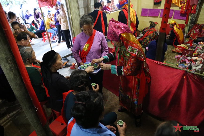 | Người được cấp sắc mời rượu cảm ơn người thân, hàng xóm. |