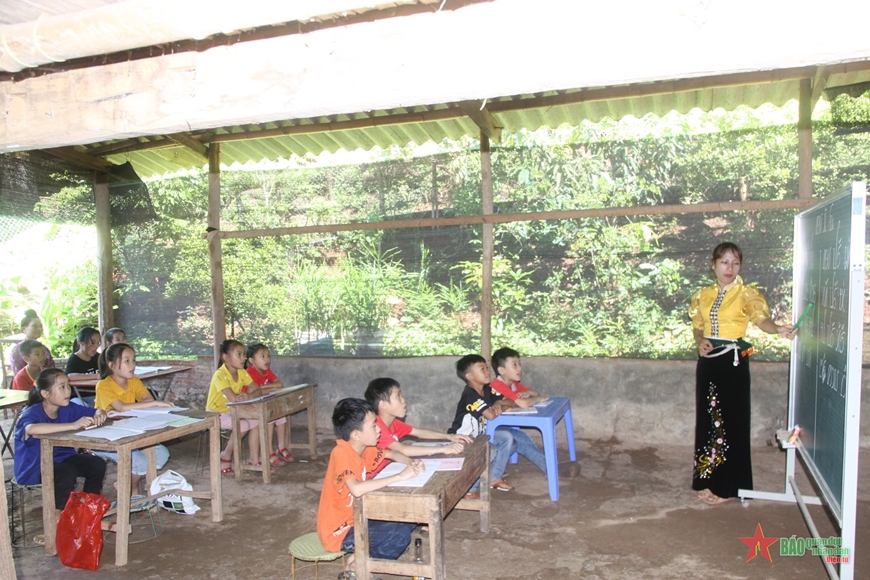 | Lớp học chữ Thái của cô giáo Hoàng Thị Hạnh ở bản Nặm Ún, xã Chiềng Đông (Yên Châu, Sơn La). |