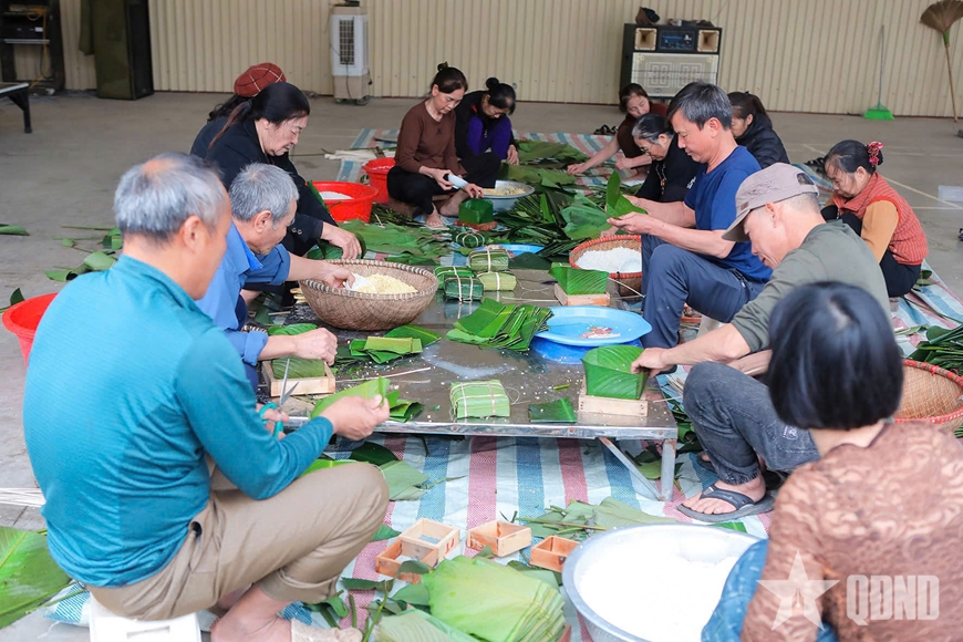 | Người Công giáo quây quần gói bánh chưng. |
