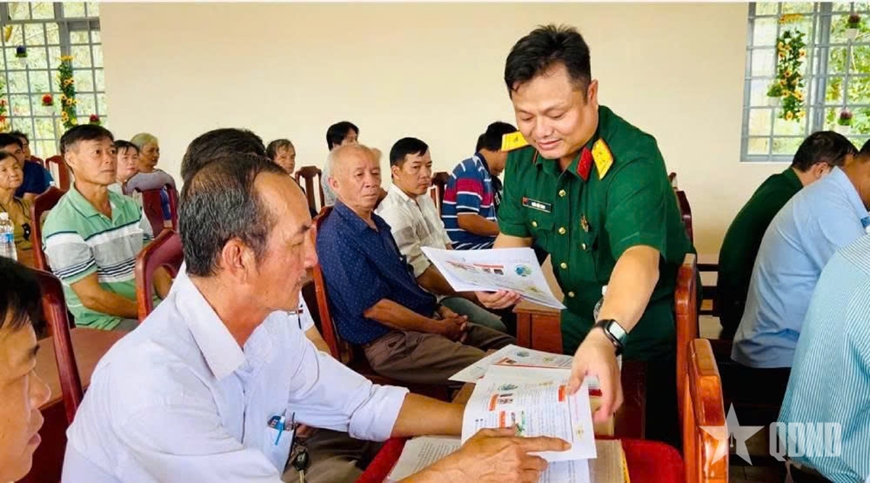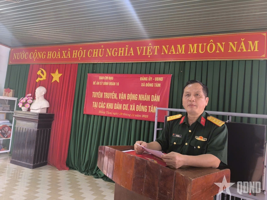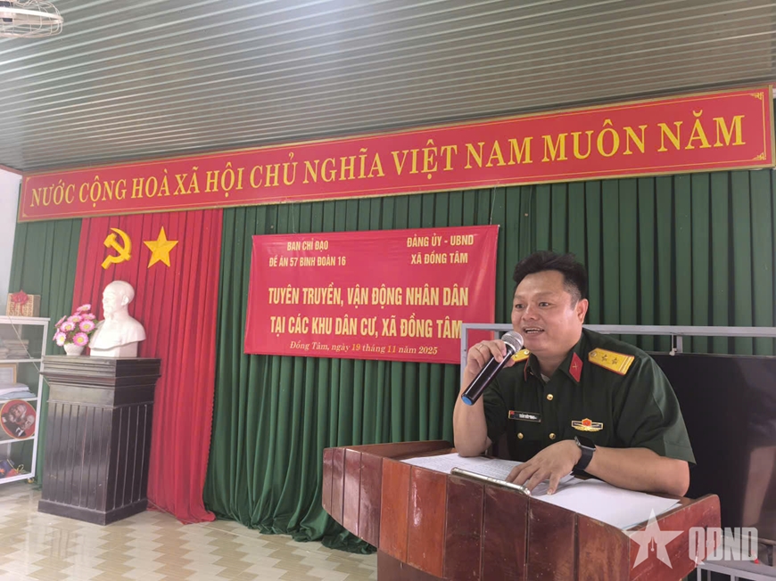 Cán bộ Binh đoàn 16 tuyên truyền Đề án 57 tại ấp Đồng Tâm 4, xã Đồng Tâm, tỉnh Đồng Nai chiều ngày 19-11.