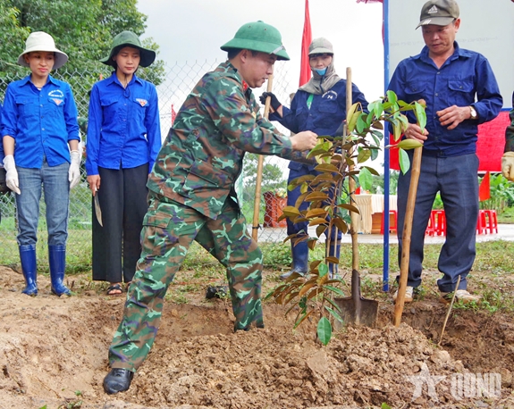 Thượng tá Phạm Xuân Tri, Đoàn trưởng Đoàn Kinh tế - Quốc phòng 72 hướng dẫn người dân trồng cây ăn quả. |