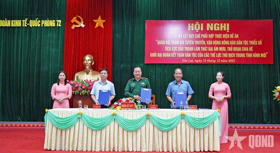 Lãnh đạo Đoàn Kinh tế - Quốc phòng 72 và các địa phương ký Quy chế phối hợp thực hiện Đề án 57. |