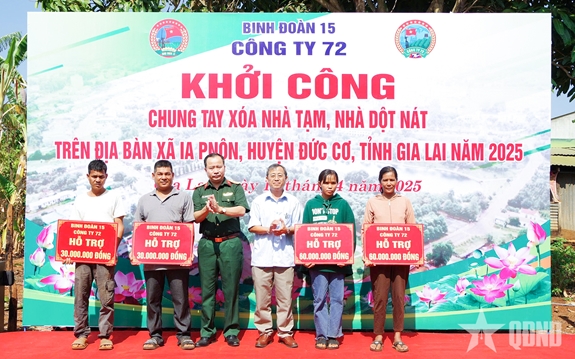 Lãnh đạo Đoàn Kinh tế - Quốc phòng 72 và Hội từ thiện Thành phố Hồ Chí Minh - Gia Lai khánh thành "Nhà tình nghĩa" tặng gia đình chị Nguyễn Thị Lý, công nhân của đơn vị. |