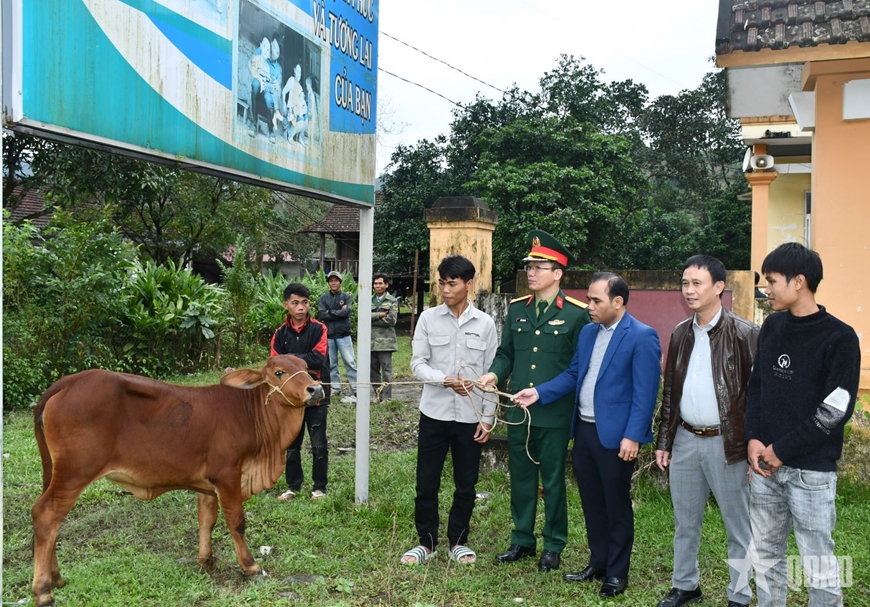 | Đoàn KT-QP 79 trao bò giống sinh sản tặng hộ nghèo, hộ cận nghèo. |