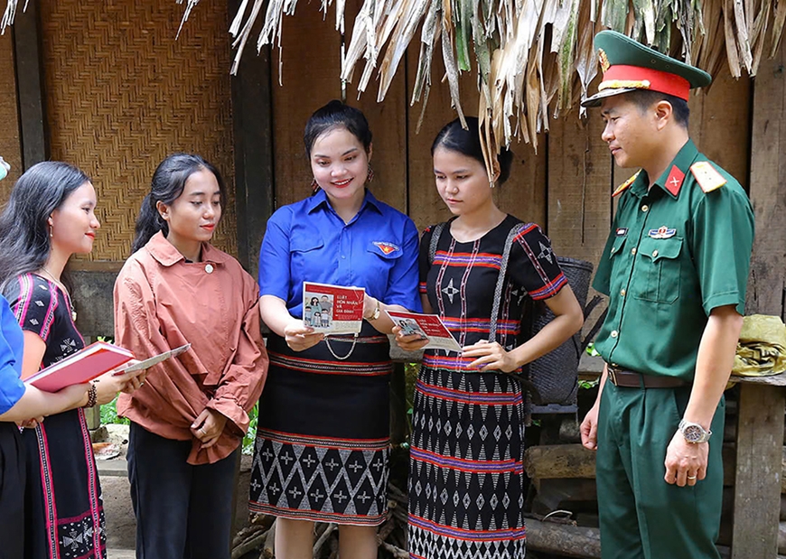 | Cán bộ, trí thức trẻ tình nguyện Đoàn Kinh tế - Quốc phòng 92, Quân khu 4 tuyên truyền, phổ biến pháp luật cho nhân dân. |