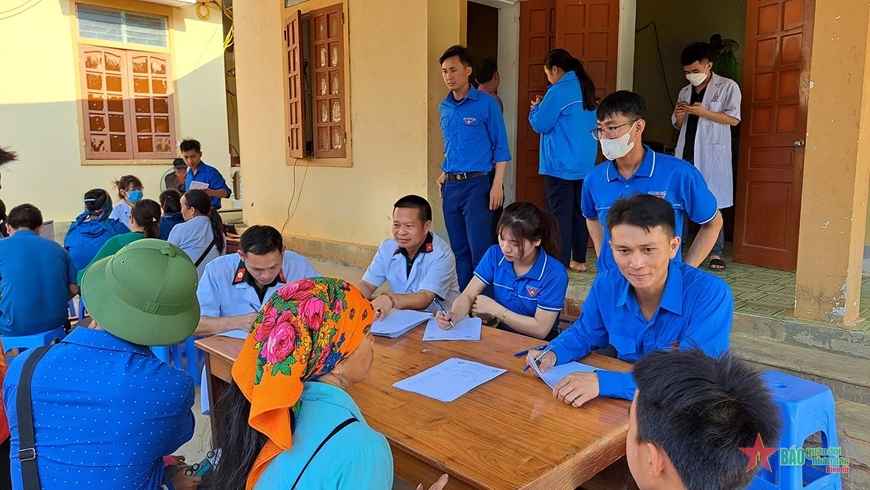 | Lực lượng Trí thức trẻ tình nguyện Đoàn KT-QP4 tham gia khám bệnh, tư vấn sức khỏe cho đồng bào. |