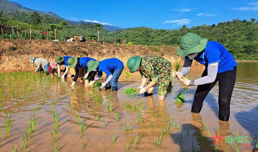 | Giúp đồng bào trong Khu KT-QP Kỳ Sơn cấy lúa. |