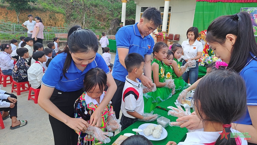 Các trí thức trẻ tình nguyện tham gia chăm sóc trẻ em trong vùng dự án.