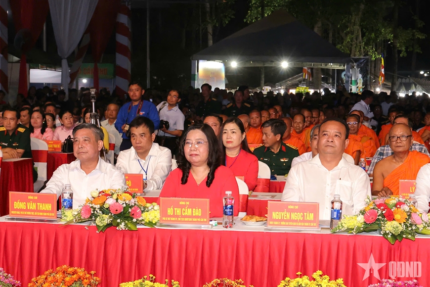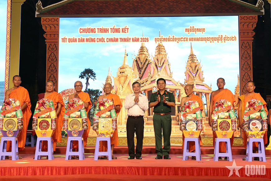 Không gian văn hóa Tết Quân dân cũng để lại nhiều ấn tượng với các hoạt động đậm bản sắc Khmer, như hội thi bánh dân gian, đua ghe ngo mini trên cạn, phiên chợ hàng Việt và trưng bày sản phẩm OCOP. Tất cả hòa quyện, tạo nên bức tranh xuân rộn ràng, gắn kết các dân tộc anh em.