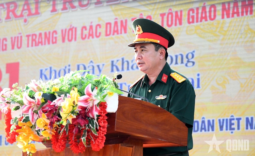 Phát biểu khai mạc, Thượng tá Ngô Khánh, Phó chính ủy Bộ CHQS tỉnh Tây Ninh, Trưởng ban tổ chức hội trại nhấn mạnh: Đồng bào các dân tộc, tôn giáo là bộ phận máu thịt không thể tách rời của khối đại đoàn kết toàn dân tộc, là chỗ dựa vững chắc trong xây dựng nền quốc phòng toàn dân, thế trận lòng dân vững mạnh.