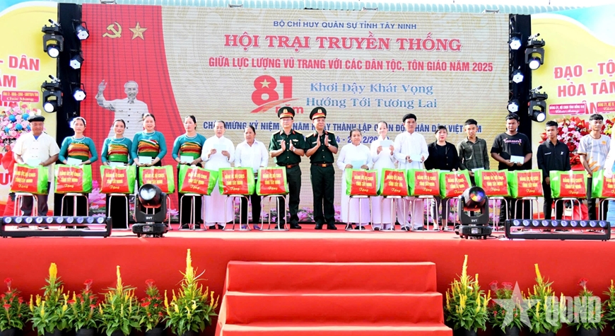 Hội trại diễn ra trong không khí sôi nổi, ấm áp tình quân - dân với nhiều hoạt động thiết thực, ý nghĩa như: Tặng quà cho các gia đình chính sách, người có công, thương binh, bệnh binh là đồng bào dân tộc, tôn giáo; ký kết chương trình phối hợp hoạt động giữa lực lượng vũ trang tỉnh với các dân tộc, tôn giáo trên địa bàn tỉnh giai đoạn 2025 - 2030; tổ chức hội trại truyền thống, các trò chơi dân gian; giao lưu văn hóa, văn nghệ.