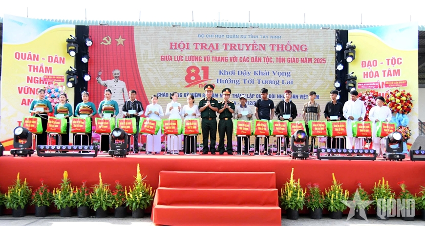 | Bộ CHQS tỉnh Tây Ninh tặng quà các hộ gia đình chính sách, hoàn cảnh khó khăn là đồng bào dân tộc, tôn giáo. |