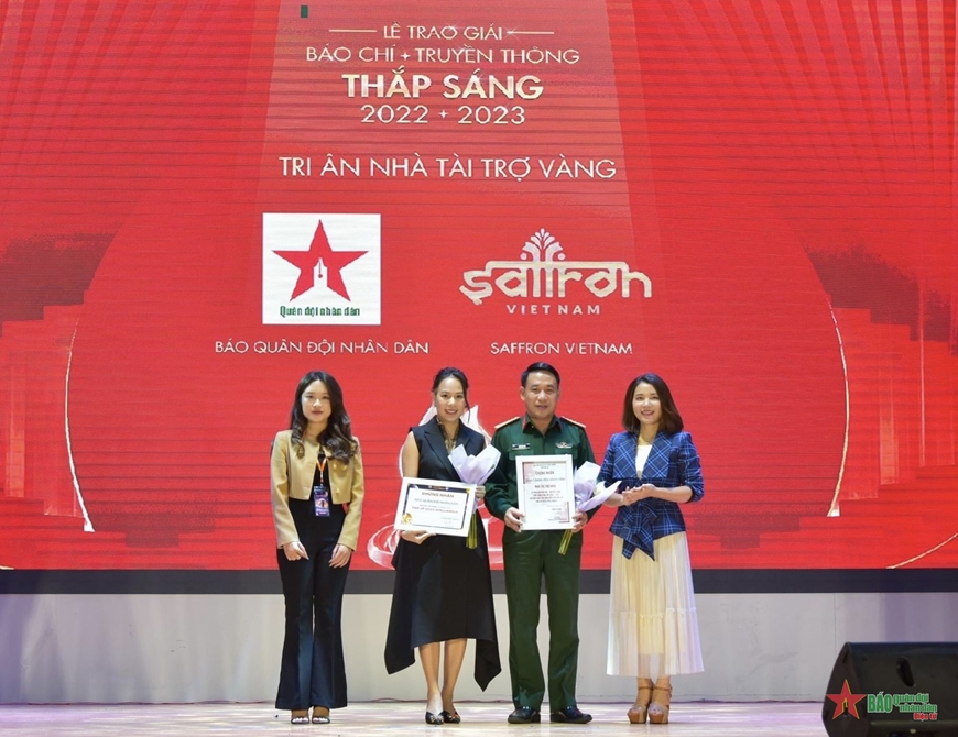 PGS,TS Nguyễn Thị Trường Giang, Phó giám đốc Học viện Báo chí và Tuyên truyền cùng Đại tá Ngô Anh Thu, Phó tổng biên tập Báo Quân đội nhân dân trao thưởng các tác giả, nhóm tác giả đoạt giải ở Hạng mục 4: Báo chí-Truyền thông bảo vệ nền tảng tư tưởng của Đảng tại chương trình.