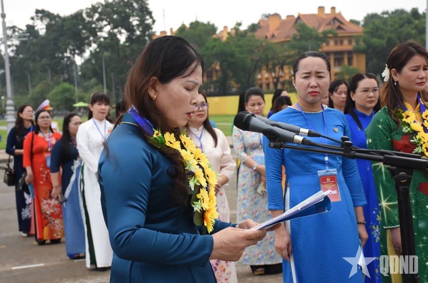Trong không khí trang nghiêm, thành kính, biết ơn vô hạn đối với Chủ tịch Hồ Chí Minh kính yêu, các nữ đoàn viên công đoàn tiêu biểu xin hứa sẽ đem hết tâm sức, trí tuệ, góp phần xây dựng giai cấp công nhân hiện đại, lớn mạnh, đất nước phồn vinh, gia đình hạnh phúc như mong mỏi của Người.