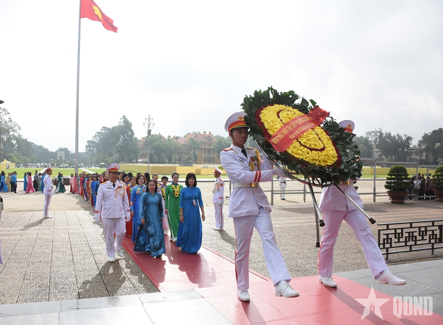 Sau lễ báo công, đoàn đã đặt vòng hoa và vào Lăng viếng Chủ tịch Hồ Chí Minh.