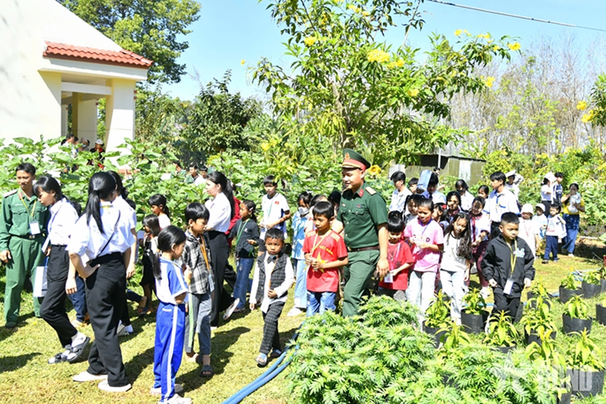 | Trẻ em mồ côi được tham quan, trải nghiệm một ngày làm chiến sĩ. |
