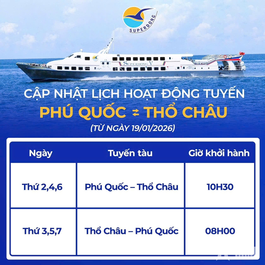 Ngày 19-1, tuyến tàu cao tốc Phú Quốc – Thổ Châu (tỉnh An Giang) và chiều ngược lại chính thức đi vào hoạt động, góp phần tăng cường kết nối giao thông, thúc đẩy phát triển kinh tế, du lịch và bảo đảm nhu cầu đi lại của người dân hai địa phương.