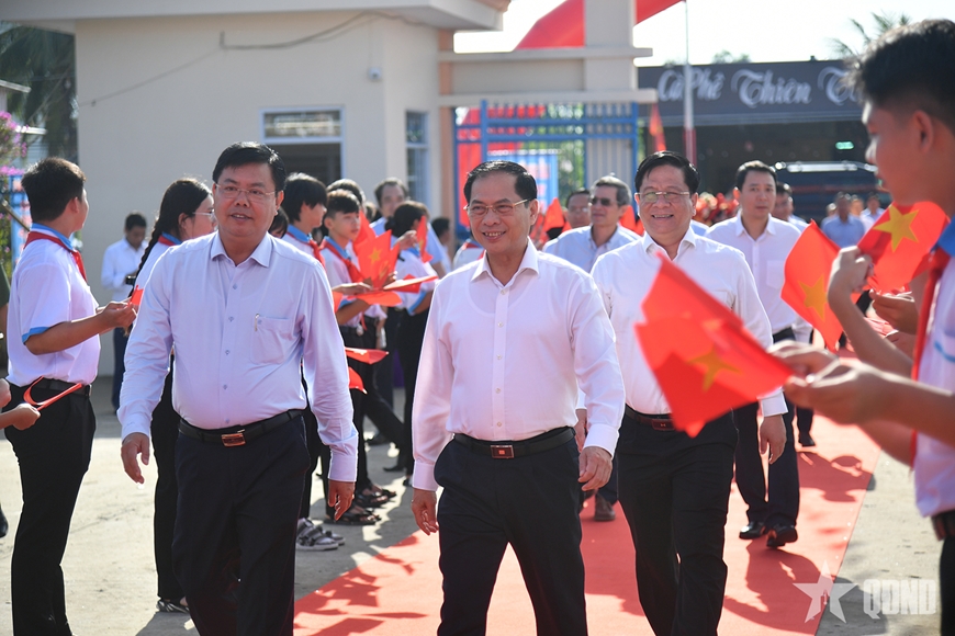 | Phó thủ tướng Bùi Thanh Sơn đến dự Lễ khởi công xây dựng Trường Nội trú liên cấp Tiểu học - THCS Vĩnh Gia trên địa bàn xã Vĩnh Gia, tỉnh An Giang. |