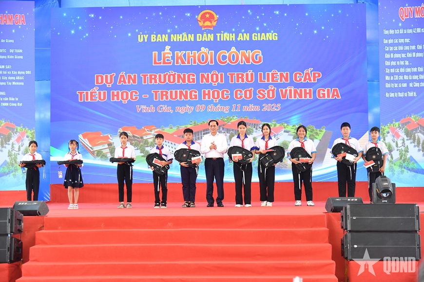 Cùng thời điểm, tỉnh An Giang cũng khởi công xây dựng Trường bán trú, nội trú liên cấp Tiểu học - THCS Giang Thành (xã Giang Thành) với 30 lớp học, 1.000 học sinh, và Trường Tiểu học - THCS nội trú Khánh An (xã Khánh Bình) với 45 lớp học, 1.500 học sinh. Các trường được đầu tư đồng bộ khu học tập, khu nội trú, bếp ăn, khu sinh hoạt văn hóa - thể thao…, dự kiến hoàn thành vào tháng 6-2026.