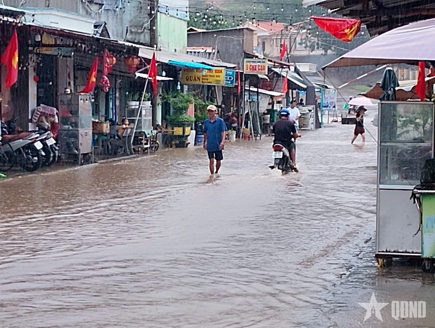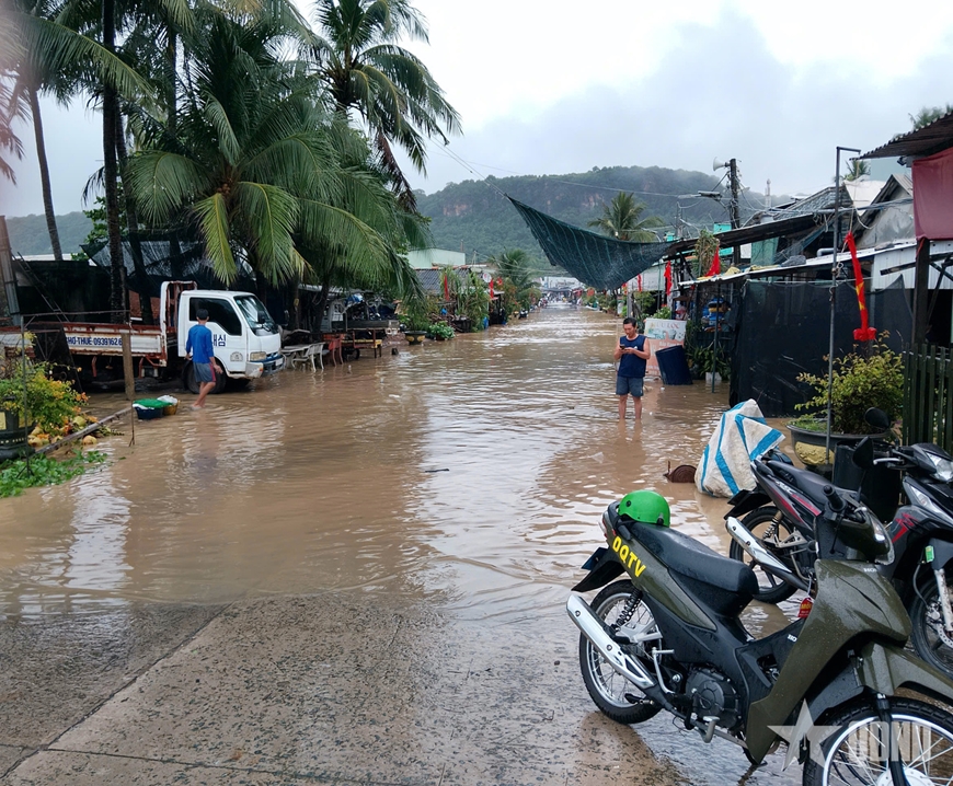 Ngày 25-10, do ảnh hưởng của bão số 12 và áp thấp nhiệt đới, mưa lớn kéo dài từ đêm 24-10 đến sáng 25-10 đã khiến nhiều khu vực trên địa bàn đặc khu Thổ Châu (An Giang) bị ngập sâu nghiêm trọng.