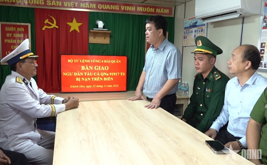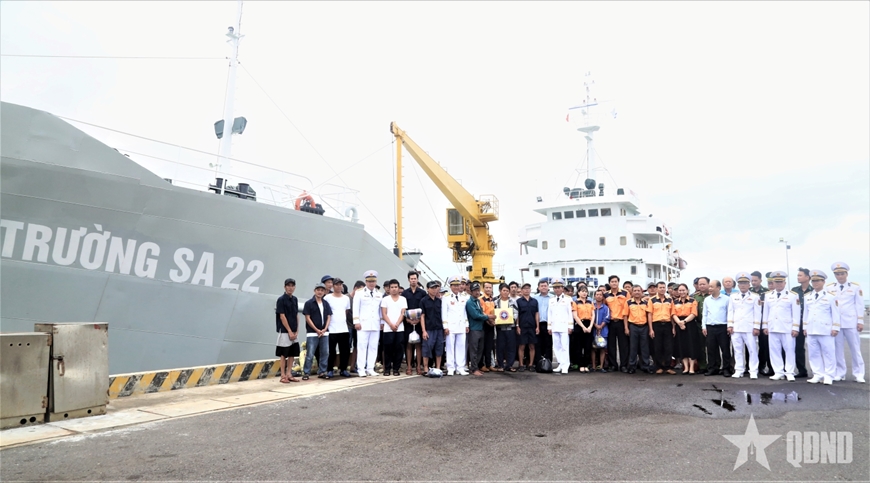 Sáng 22-12, tại phường Bắc Cam Ranh, tỉnh Khánh Hòa, Tàu Trường Sa 22, Hải đội 411, Lữ đoàn 955, Vùng 4 Hải quân đã tiến hành bàn giao 52 ngư dân gặp nạn trên tàu cá QNa 91917 TS cho gia đình và chính quyền địa phương.