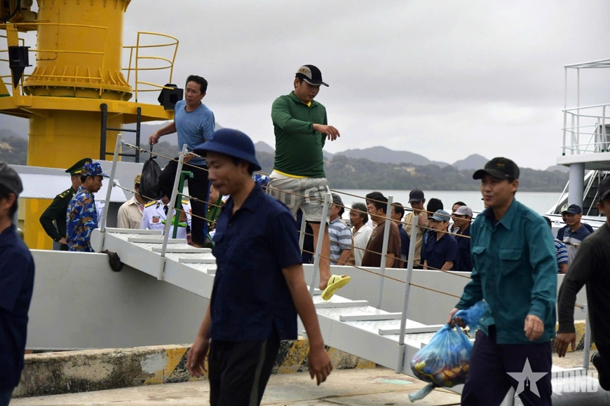 Ngày 20-12, tàu Trường Sa 22 cơ động đưa 52 ngư dân trên tàu cá QNa 91917 TS về đất liền.