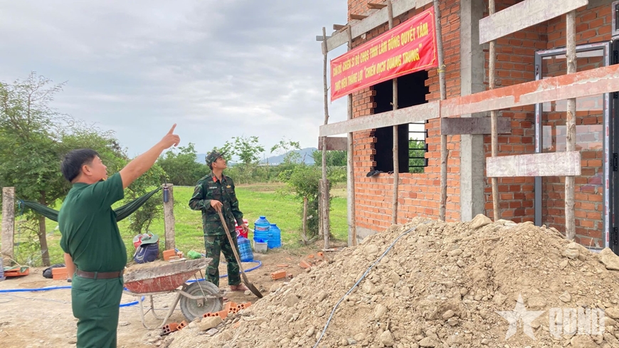 Sau gần một tháng thi công với tinh thần và trách nhiệm cao, căn nhà cấp 4 có tổng diện tích 85m2, kinh phí 170 triệu đồng do địa phương hỗ trợ đã được hoàn thành bằng công sức của cán bộ, chiến sĩ Ban Chỉ huy Phòng thủ Khu vực 5 – Phan Thiết, bảo đảm chất lượng, thẩm mĩ và phù hợp với nhu cầu sử dụng của gia đình.