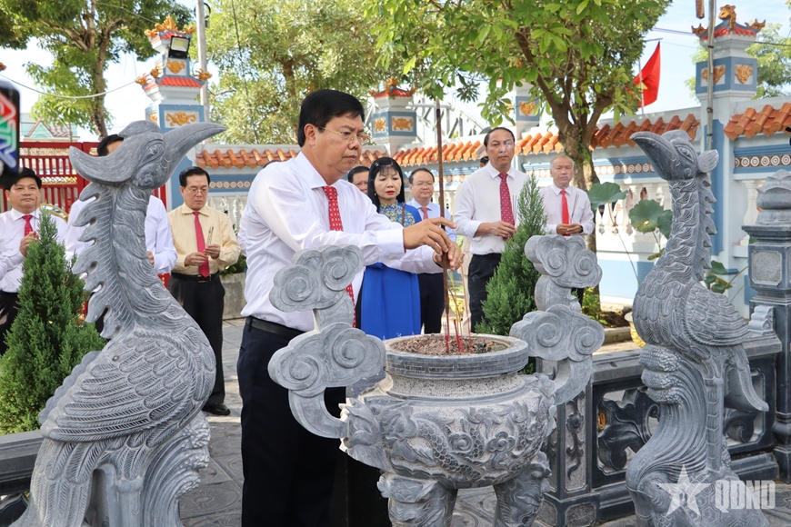 Ủy viên Trung ương Đảng, Bí thư Tỉnh ủy An Giang Nguyễn Tiến Hải thắp hương tại đình Nguyễn Trung Trực.
