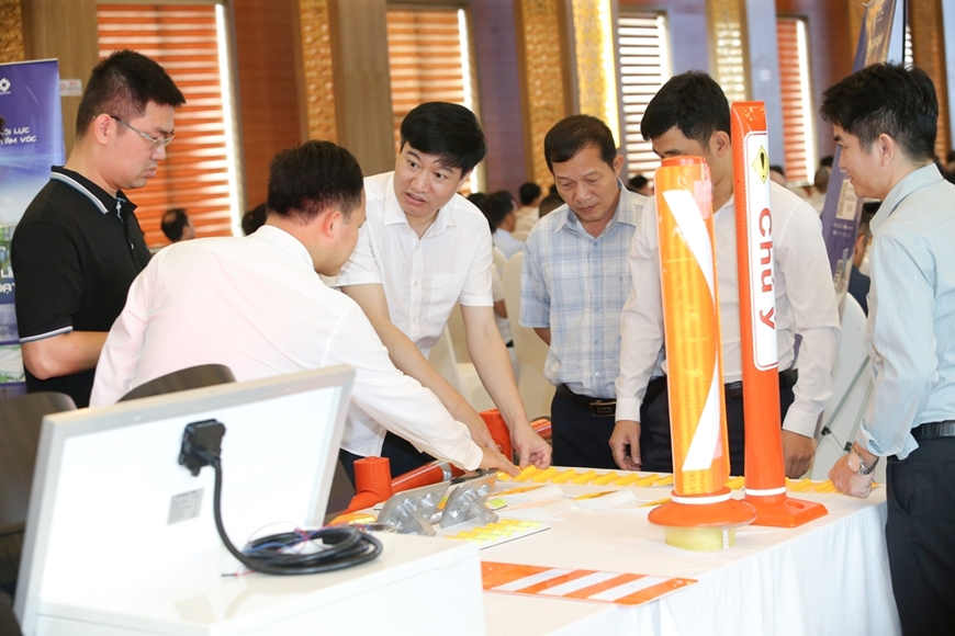 Các đại biểu trải nghiệm hệ thống thiết bị bảo đảm an toàn giao thông hiện đại tại hội nghị.