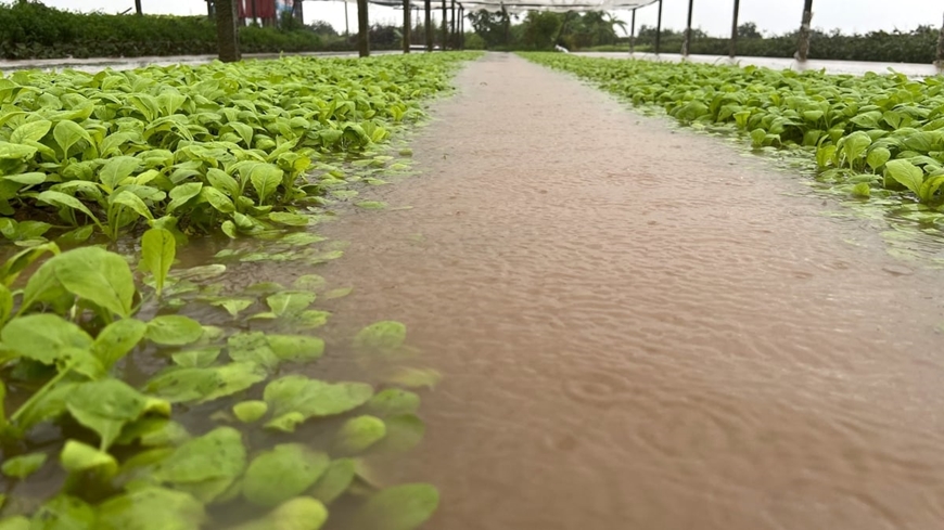 Ruộng rau ở phường Thượng Cát, Hà Nội bị ngập do mưa lớn ngày 30-9-2025. Ảnh: Báo Nông nghiệp và Môi trường |