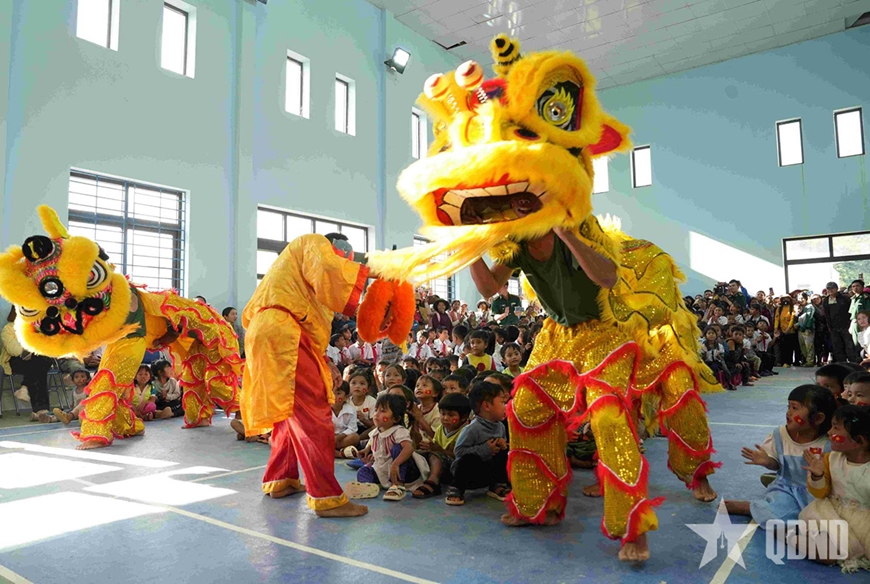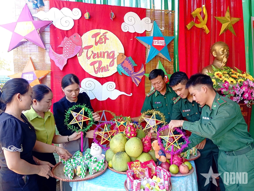 Điểm nhấn của chương trình là các tiết mục văn nghệ, múa lân, hoạt động giao lưu “chị Hằng - chú Cuội” cùng các trò chơi dân gian, tạo nên không gian rộn ràng sắc màu. Ngoài ra, các đơn vị còn triển khai mô hình “Tay kéo biên phòng” cắt tóc miễn phí và tổ chức bữa ăn nghĩa tình phục vụ học sinh, mang lại niềm vui, sự gắn kết trong cộng đồng.