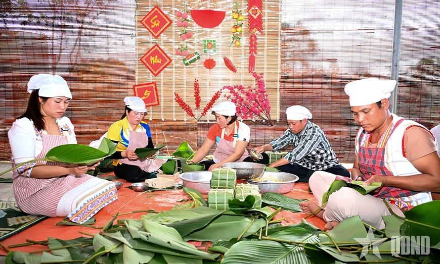 | Hội thi gói bánh chưng diễn ra sôi nổi. |