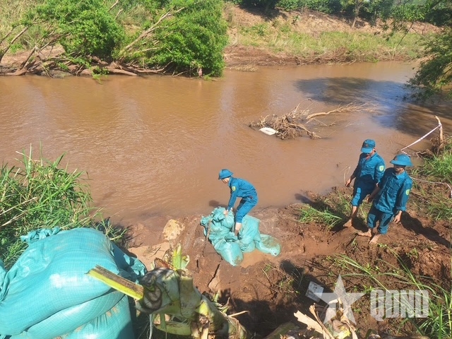 | Bộ CHQS tỉnh Đắk Lắk khoanh vùng và cử lực lượng canh gác khu vực nguy hiểm. |